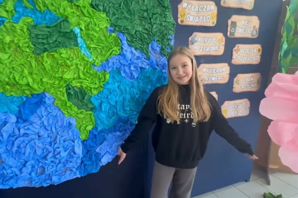 Uczniowie klasy 4G przygotowali film „Ziemia w naszych rękach”, poświęcony ochronie środowiska i codziennym działaniom, które mają realny wpływ na stan planety. Projekt zwraca uwagę na proste wybory, które każdy może wprowadzić w życie. W nagraniu pokazano znaczenie takich działań jak oszczędzanie wody i energii, segregowanie odpadów, niemarnowanie jedzenia, ograniczanie zakupów oraz ponowne wykorzystywanie przedmiotów….
